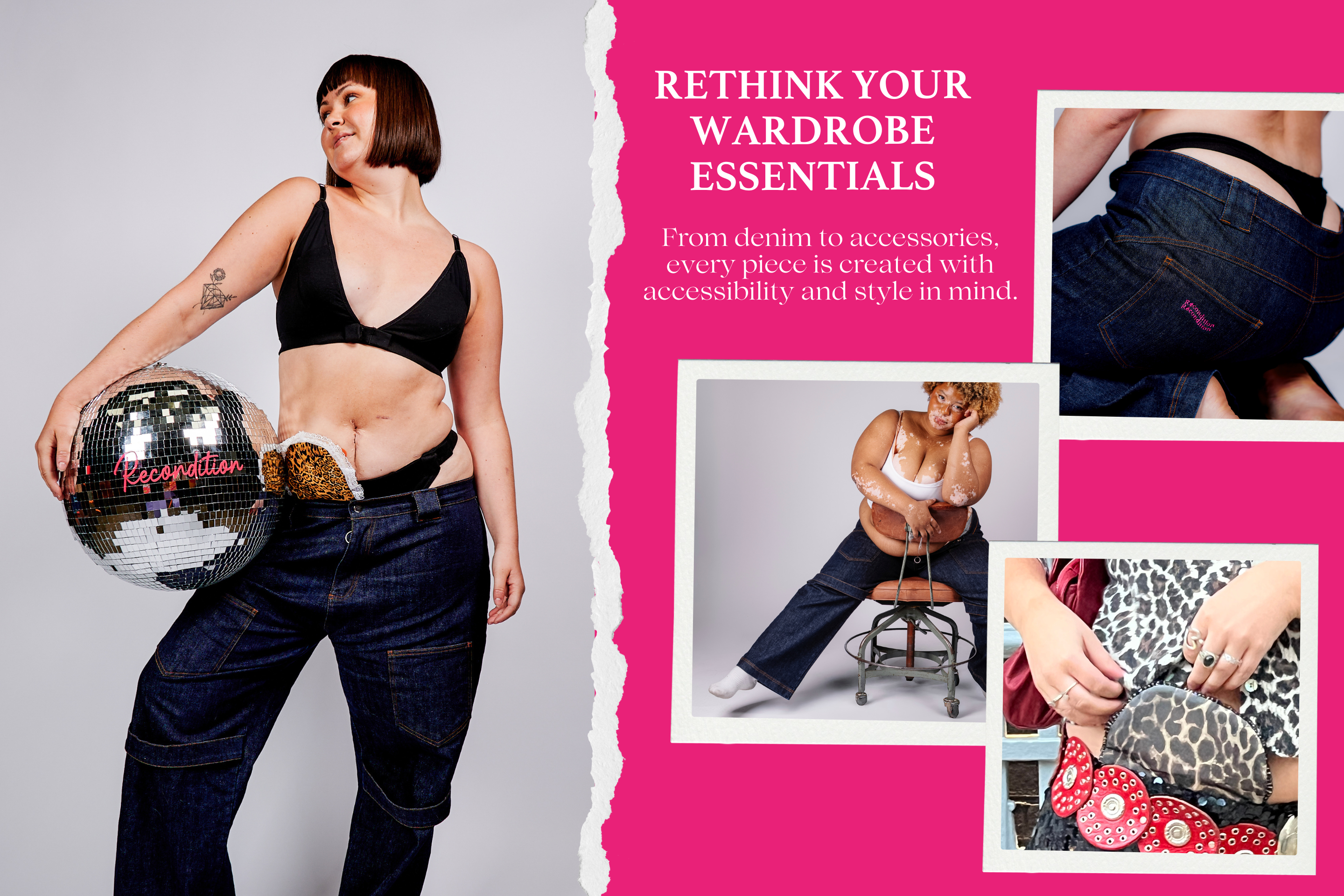 ID: Three models with disabilities waiting to walk the runway in Recondition looks